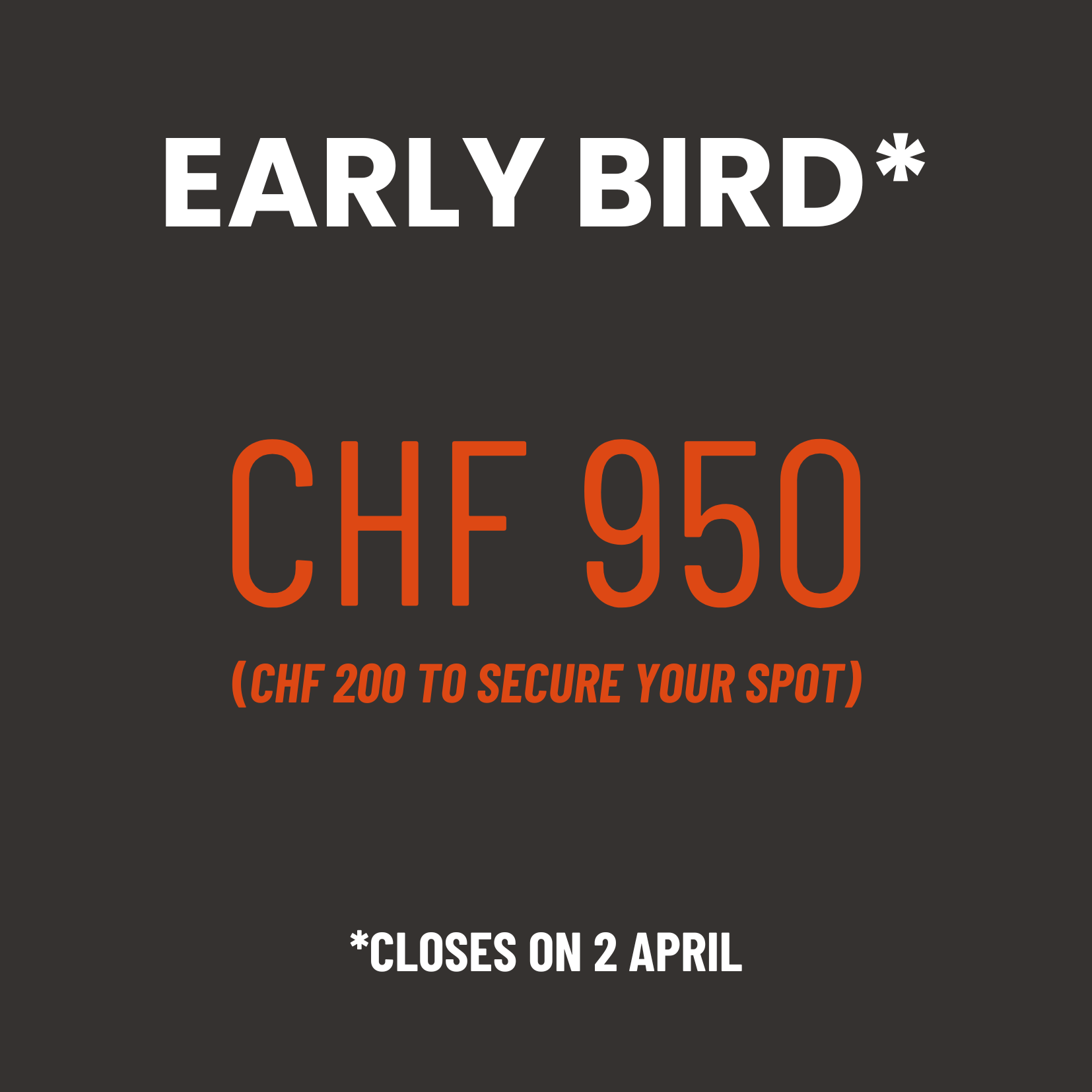 A CHF 200 deposit is required to secure your place and is fully refundable until 6 April. The remaining balance is due no later than 18 April (21 days before the event). For cancellations received more than 21 days before the event (before 18 April), participants are entitled to a 50% refund of the total participation fee paid. No refunds are available for cancellations made within 21 days of the event (from 18 April onwards). If you are unable to attend within 21 days of the event, you may transfer your place to a colleague at no additional cost, subject to prior written notice.
